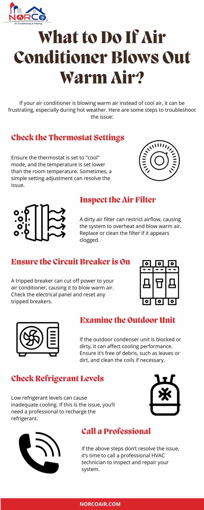 Is your air conditioner blowing warm air instead of cool air? Check out our infographic that shows steps to troubleshoot this issue. If you are seeking AC repair Bedford services, then your search ends now. Contact the professionals from Norco Air.